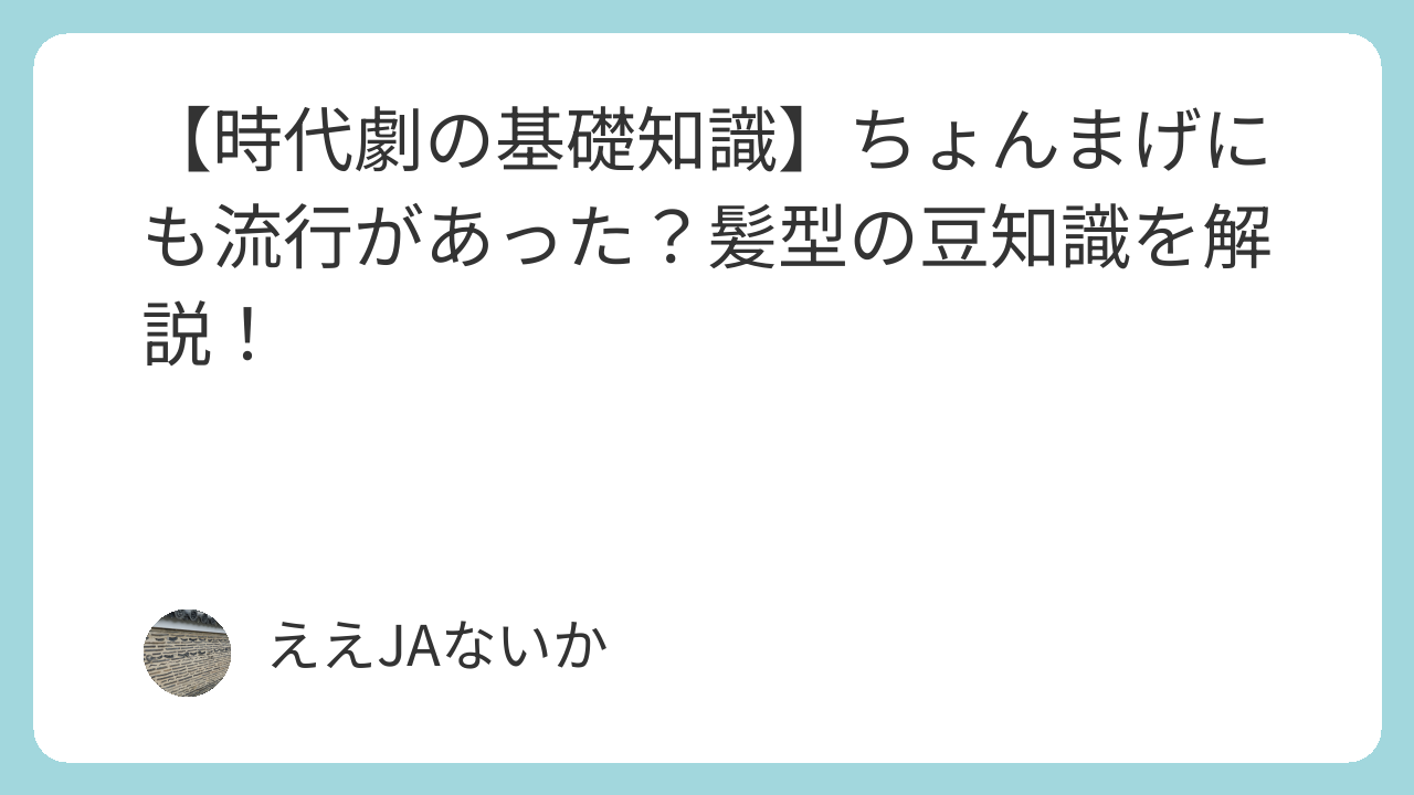 - 時代劇での見分け方: 正義感の強い主人公や、真面目な役人がよく結っているスタイルです。