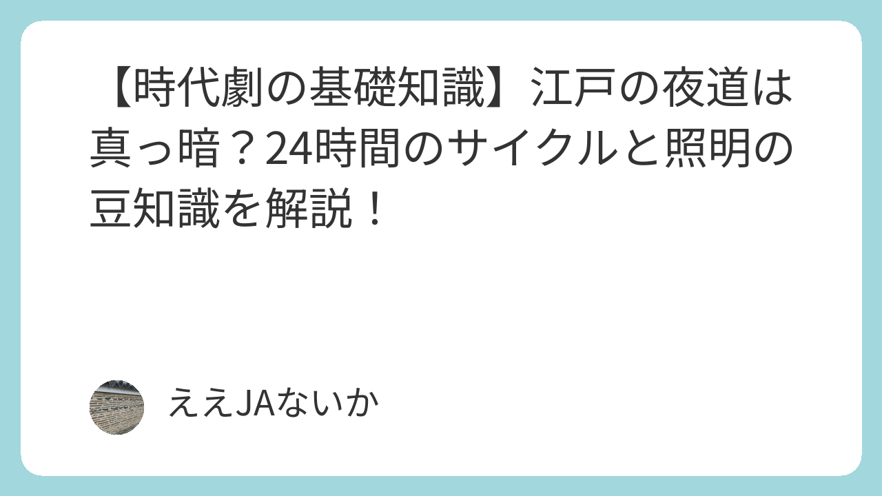 現代の私たちは、街灯やコンビニの明かりで夜でも遠くが見えますが、江戸時代は日が暮れると「一寸先は闇」の状態でした。
