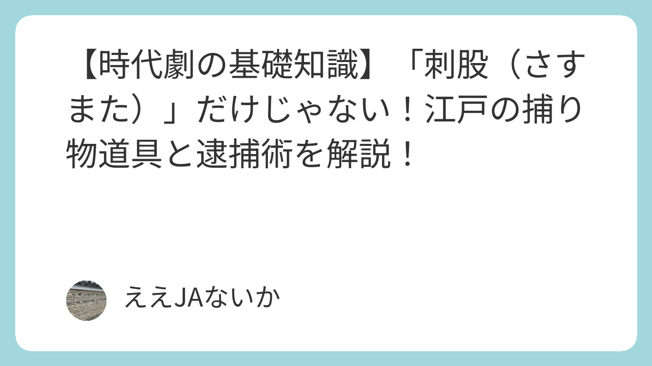 - 豆知識: 全員が持っていたわけではなく、主に「与力」や「同心」が所持し、岡っ引きは許された場合のみ携帯していました。